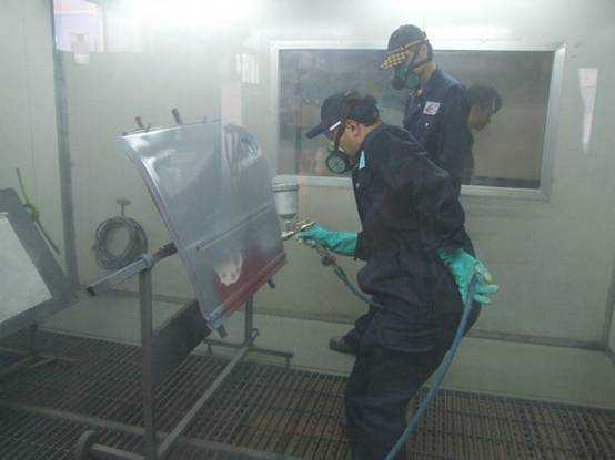 宋老師演示使用噴槍作噴涂測試