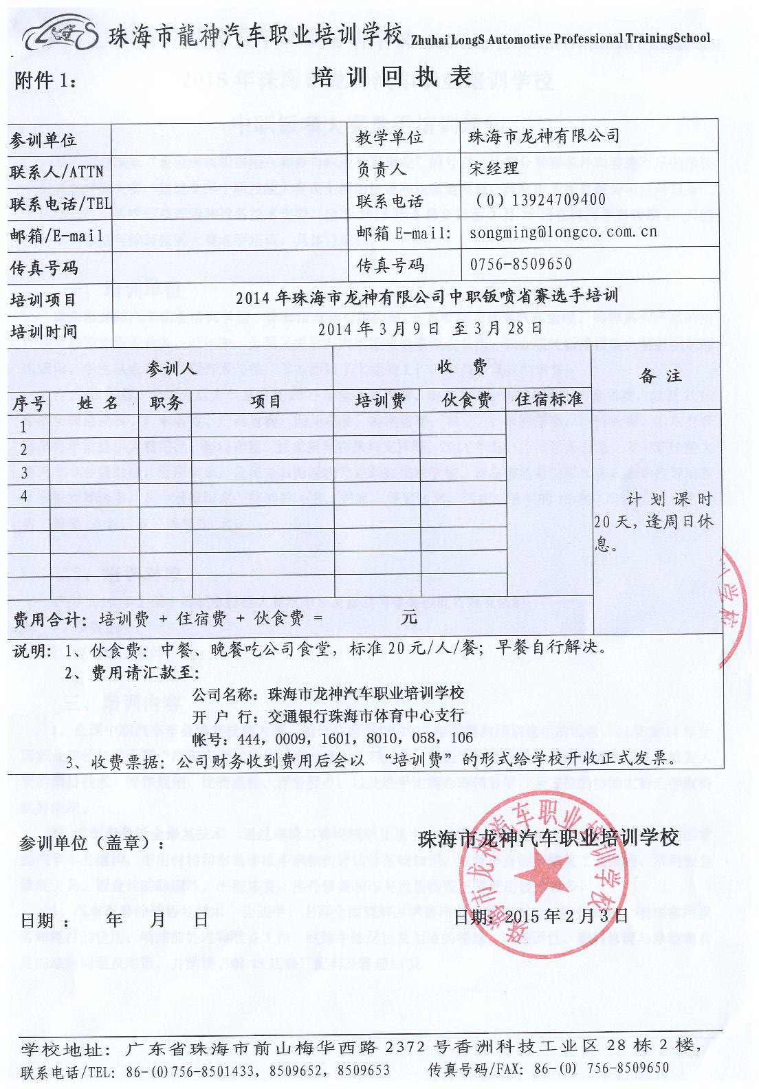 附件1: 培 訓 回 執(zhí) 表