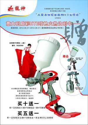 吉尼斯HTE噴槍“初春送?!贝黉N活動方案 2013-03-01 27633 吉尼斯HTE噴槍“初春送?!贝黉N活動方案 (產(chǎn)品編號:30282000-30286000) 2013年3月份市場促銷方案如下:一、主題:“初春送福”噴槍大讓利。二、活動時間:1、 時間:2013年03月1日至2013年05月1日 2、 時長:共計2個月 三、活動內(nèi)容:1、 買十送一(即一次購買十把HTE噴槍送一把HTE噴槍)2、 買五送一(即一次購買五把HTE噴槍送一把龍神305噴槍)四、具體操作方案 1、購買十把HTE噴槍送一把HTE噴槍 2、買五把HTE噴槍送一把龍神305噴槍 (以上二個方案具體促銷方式可按增量的形成搭配)